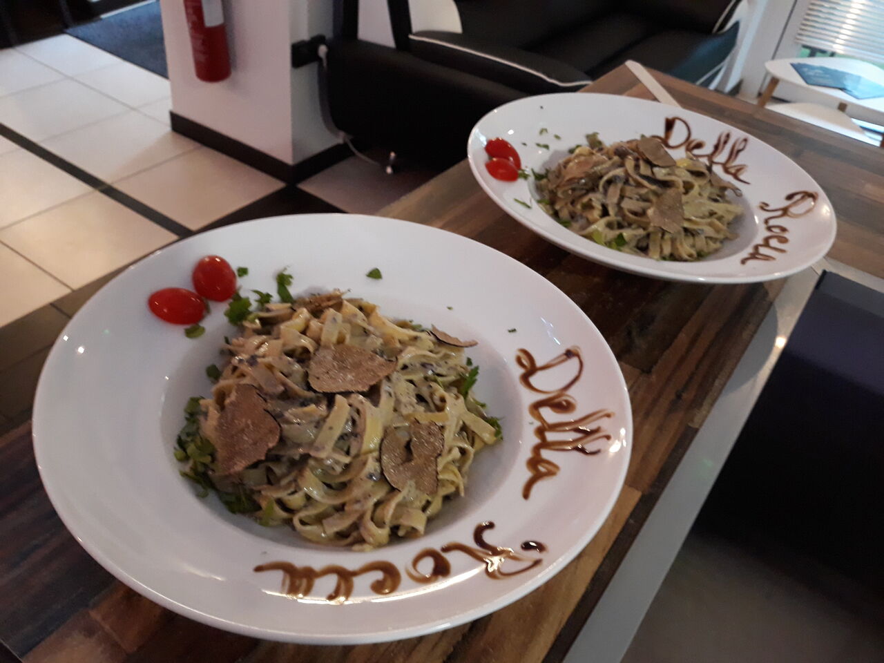 La cuisine italienne vous gâtera avec son exclusive variété de délices culinaires. Lorsque vous viendrez nous voir, goûtez aussi nos boissons alcoolisées ou nos bières aromatiques. Nos desserts divins, notre tiramisu, notre crème glacée savoureuse et nos pains frais vous rassasieront pendant la pause ou au dessert. Nous serions ravis de vous accueillir pour un déjeuner délicieux ou un dîner dans une atmosphère agréable ! Nous vous offrons le wifi gratuitement. Vous restez ainsi connecté, pendant votre déplacement.